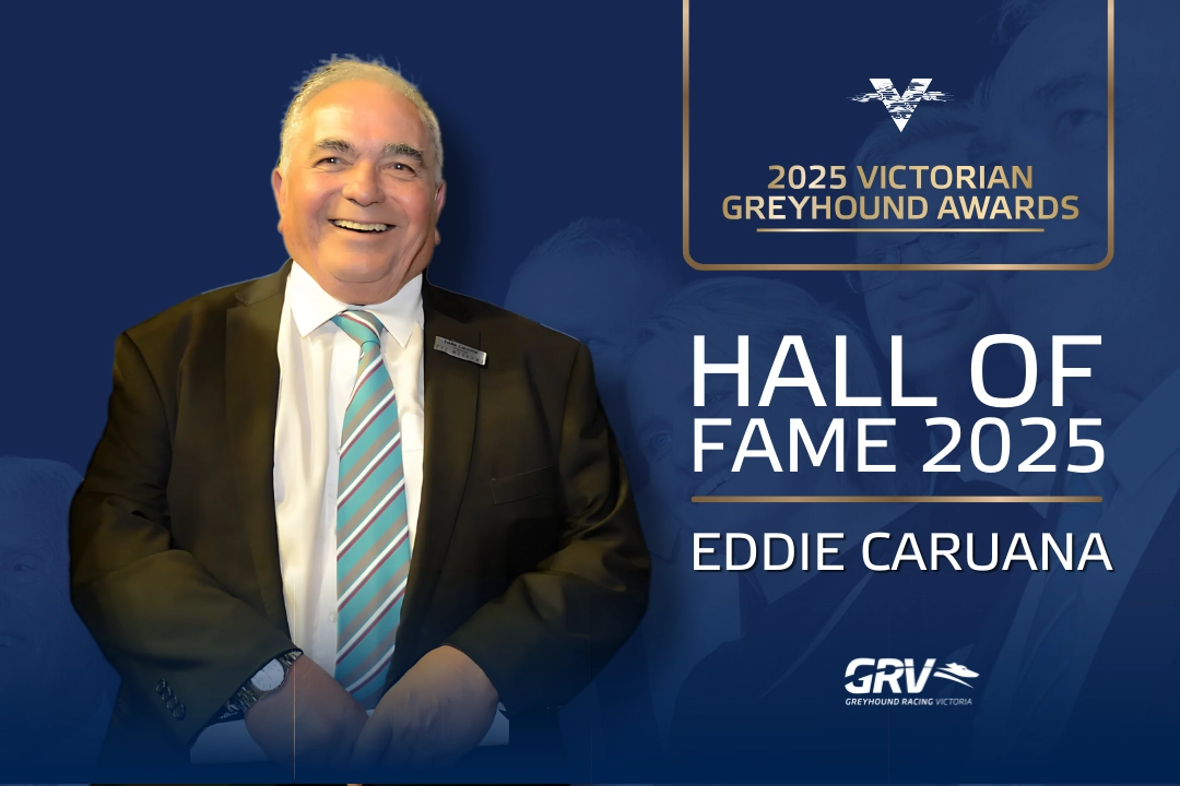 One of Victoria’s most influential greyhound racing administrators, Eddie Caruana, has been inducted into the Greyhound Racing Victoria Hall of Fame.